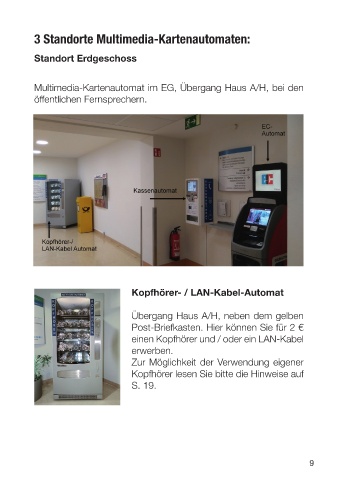 Multimedia-Kartenautomat im EG, Übergang Haus A/H, bei den