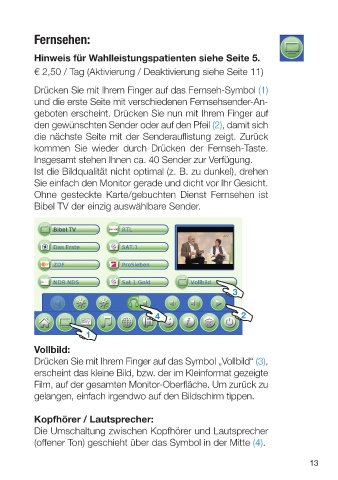 Drücken Sie mit Ihrem Finger auf das Fernseh-Symbol (1)